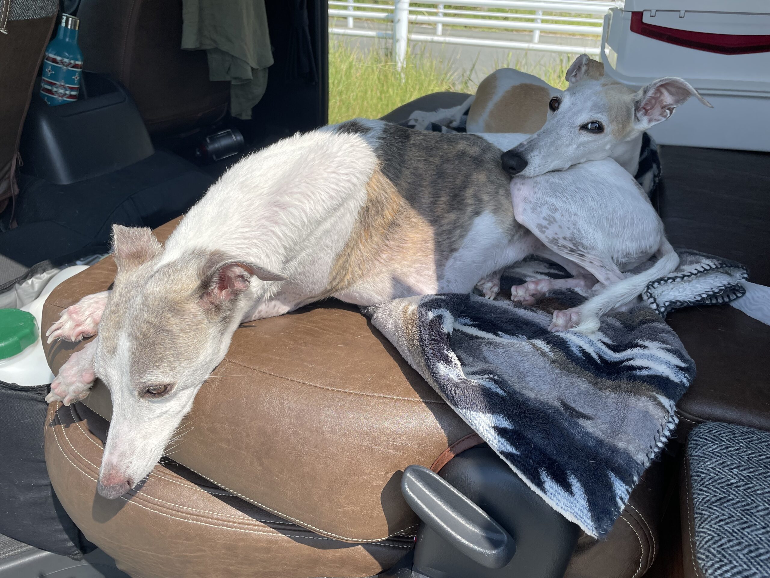 海で遊び疲れてわんこもへとへと、、。