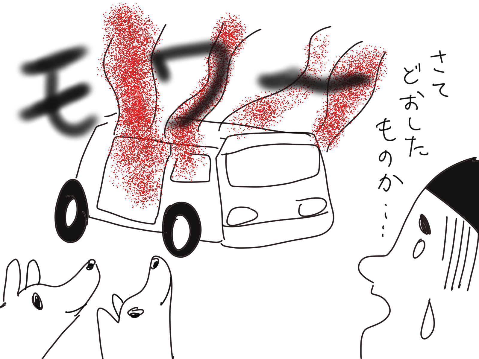 車中の荷物を全部まず外に引っ張り出し(雨も降ってきた)