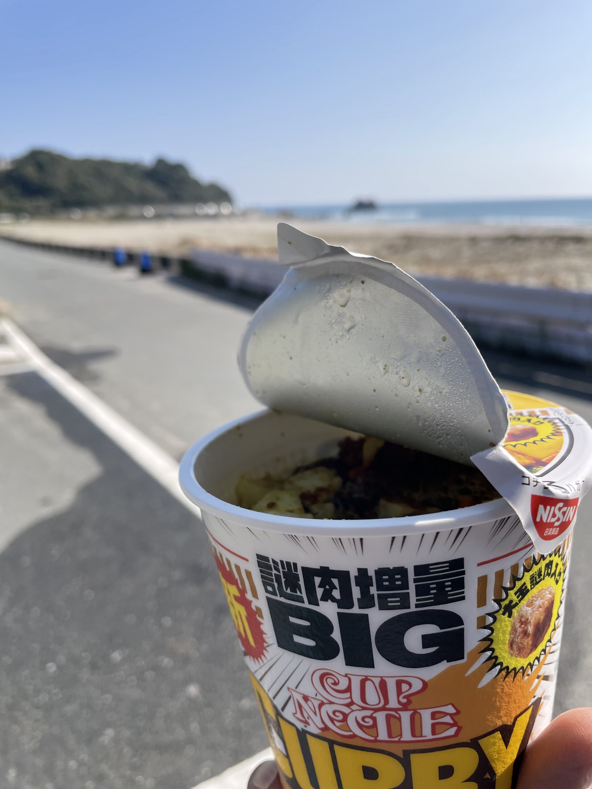 なんでカップヌードルが海で食べるとこうも美味いのか、、。